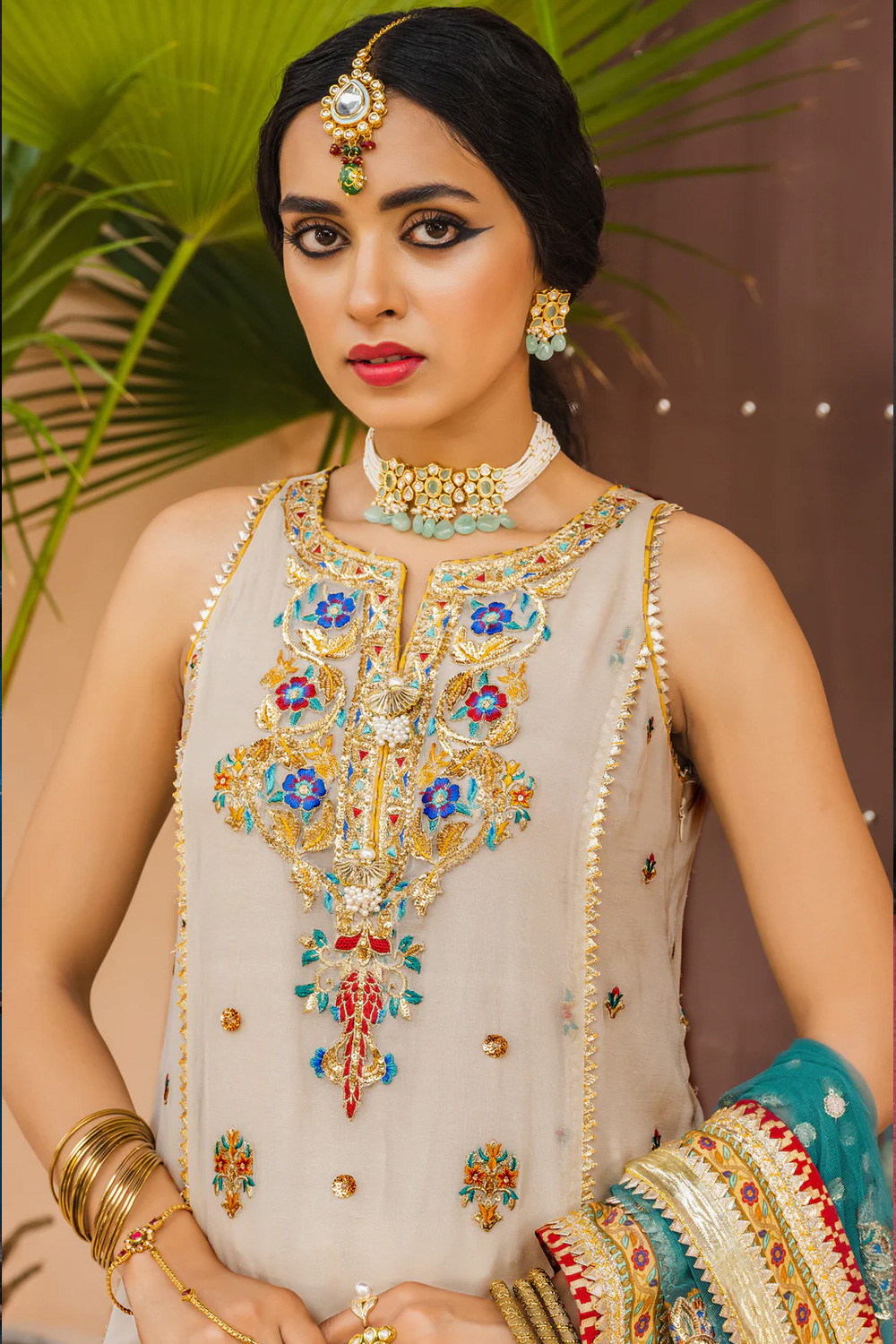 Embroidered Chiffon Front