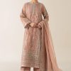 Make a bold statement with our exquisite rubby woo full-sleeve pishwaz, intricately hand-embellished with gotta tilla, cut dana, and other luxurious materials. Featuring a stunning deep neckline and opulent gold finishings, this piece radiates sophistication and allure. Paired with a lavish dupatta that showcases soft pink hues in its delicate hand embellishments, the heavy borders add an extra layer of intrigue that combines tradition and modern elegance.